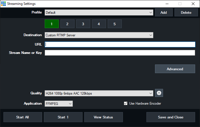 Create one or more profiles with unique streaming settings, for example one for each streaming provider.